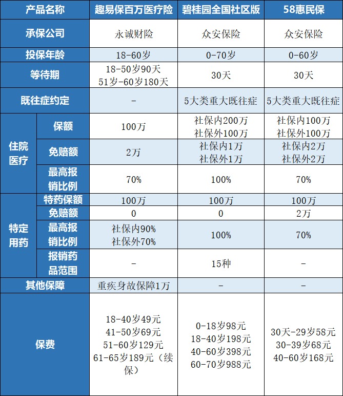 对于所在城市尚且没有专属“惠民保”的居民而言,另有企业推出全国版可作为选择。《每日经济新闻》记者测评了趣易保百万医疗险、碧桂园全国社区版、58惠民保、360城惠保、全民普惠保五款“全国版”产品。