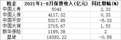 A股5上市险企前8月保费1.8万亿 寿险业务人保降最猛