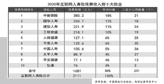 这也意味着此前火爆网络的百万医疗险类补偿型医疗保险等产品销售门槛提升。在2020年互联网人身保险业务规模保费前10位的保险公司中,半数险企的二级分公司数目不足30家,个别公司甚至仅设有个位数的分公司。新规无疑会给此类中小险企的互联网人身保险业务带来不小影响。