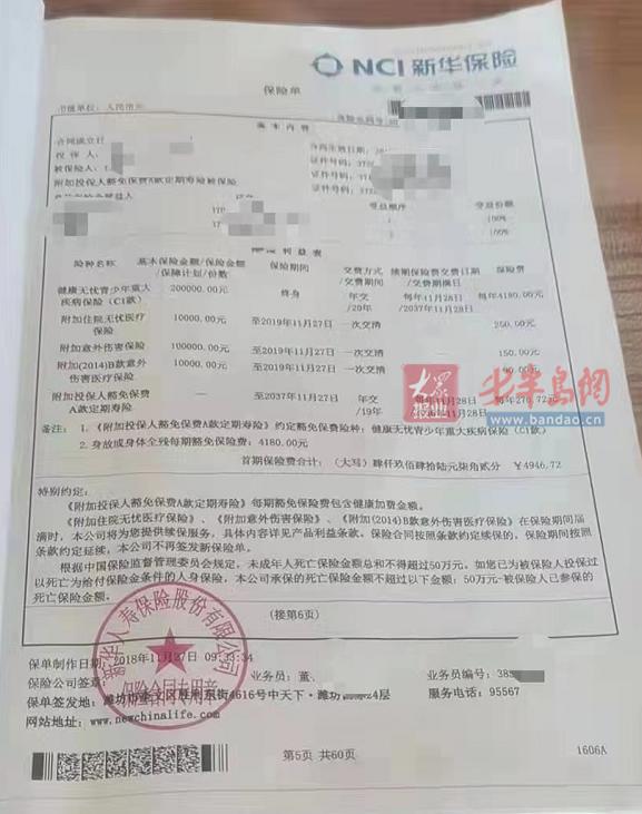 诸城市民质疑新华保险业务员虚假承诺、乱扣费