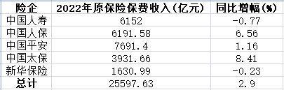 A股五大险企2022年保费三升两降 增2.9%共计2.56万亿