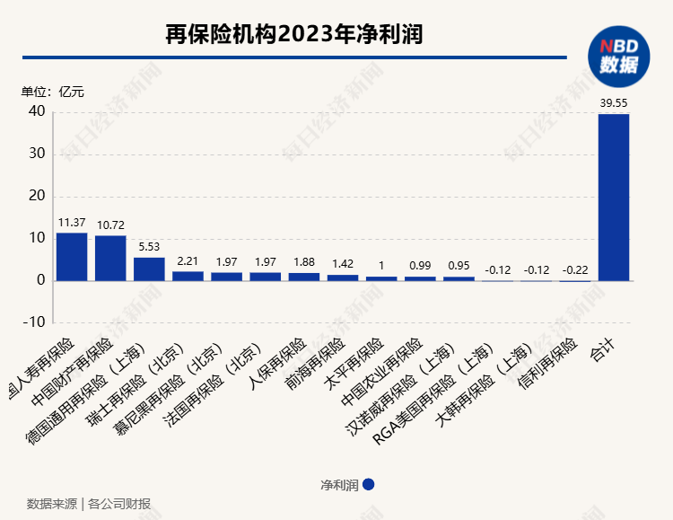 去年14家再保险机构合计净利润近40亿元