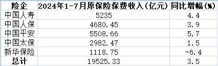 A股5险企前7月保费共1.95万亿 4家升新华保险降幅收窄