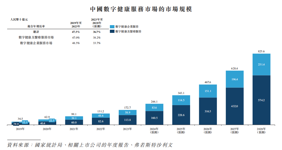 根据弗若斯特沙利文的资料,中国数字健康服务平台(按收入计)由2019年的365亿元增至2023年的1727亿元,复合年增长率为47.5%,并预期于2028年将达至8256亿元,复合增长预期将为36.7%。在此赛道上,轻松健康集团已展现出显著先发优势。