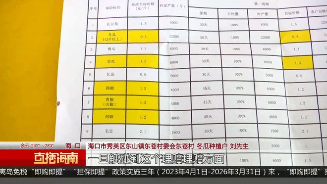 针对农户反映的问题,记者随后电话联系了承保方中国人民财产保险股份有限公司海口市分公司。工作人员回应称,政策性农业保险并非固定定价,会结合市场田头价格波动、地块验标情况动态调整,此前已经参与投保的冬瓜种植户会按6毛钱的目前价格继续履约,而包括东苍村在内,海口多个村委会里还没有参保的种植户只能按照最新的价格进行投保。“后续我司会加强与农户及村镇政府沟通工作,适当调整优化参保模式,减少农户因市场价格带来经济损失。”