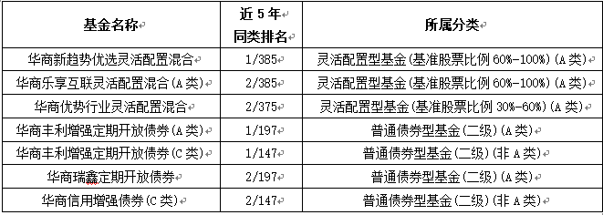 华商基金近5年多只基金业绩同类排名靠前