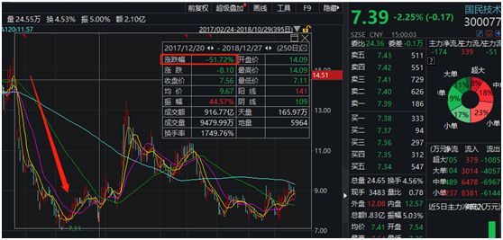 2017年12月20日国民技术复牌后,股价连续两个一字板跌停,至2018年12月28日,跌幅从复牌前一天的15.66元每股,跌至7.39元,跌幅超过一半,诸多投资者损失惨重。