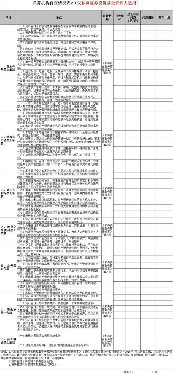 这次私募需要填写的《自查情况表》有两个,一是所有私募都要填写的,二是仅需要证券私募填写的。