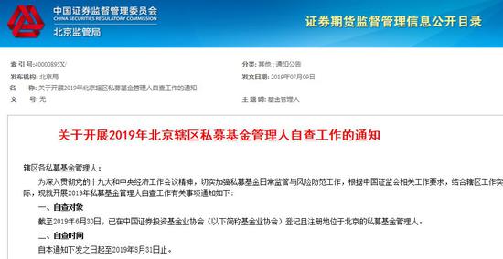 北京证监局发布私募自查通知
