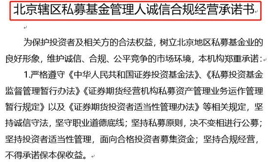 私募需签署诚信合规经营承诺书