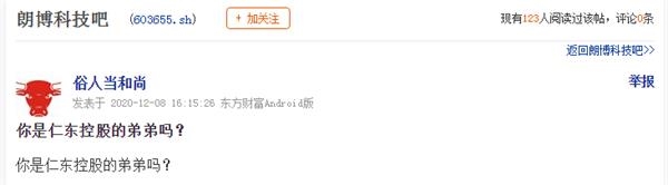 有股吧网友就表示,朗博科技是仁东控股的弟弟吗?也有网友表示,朗博科技果然是熊二。