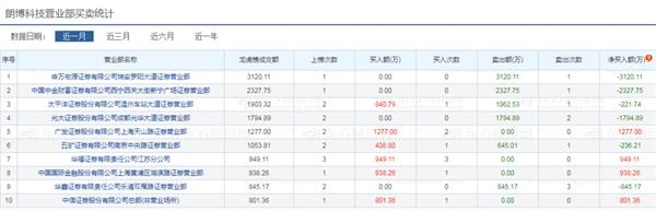 那么究竟是谁在砸盘呢?而从朗博科技近一个月营业部买卖统计显示,申万宏源瑞安罗阳大道证券营业部近一个月净卖出超3000万元;中国中金财富证券西宁西关大街新宁广场证券营业部净卖出超2000万元。
