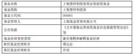 上银慧祥利债券增聘基金经理葛沁沁