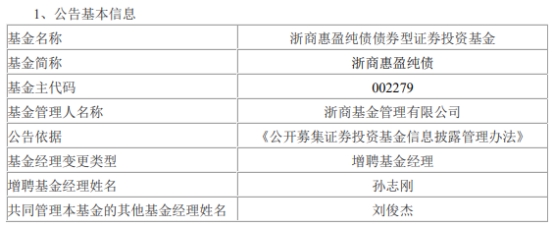 浙商基金3只债基增聘基金经理孙志刚