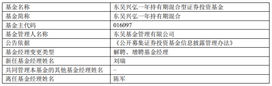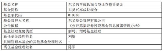 东吴基金2只混基增聘基金经理刘瑞 陈军离任