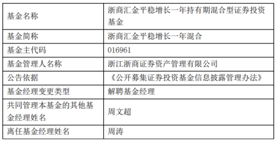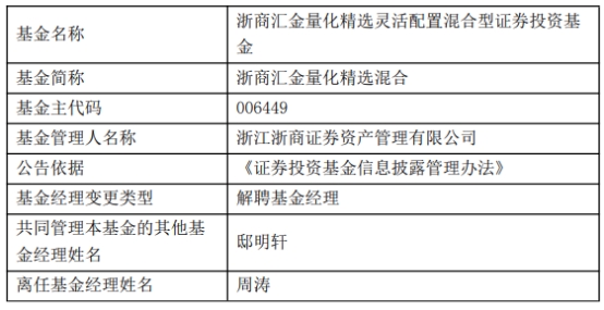 浙商证券资管周涛离任3只基金