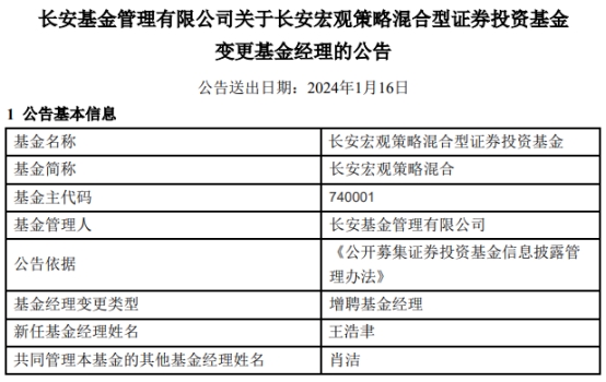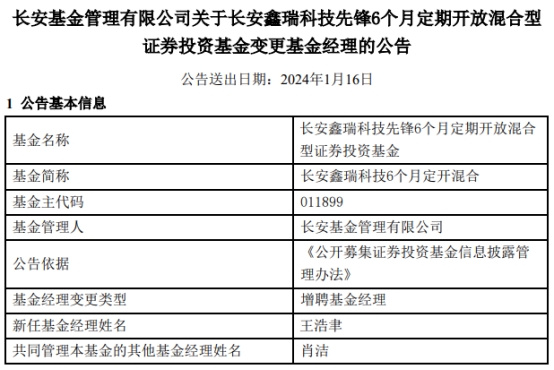 长安基金2只混基增聘基金经理王浩聿