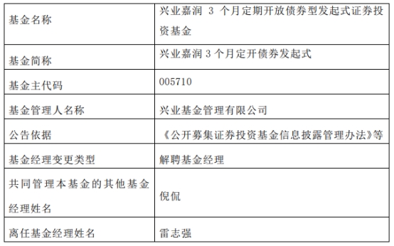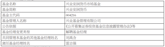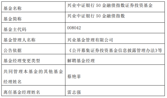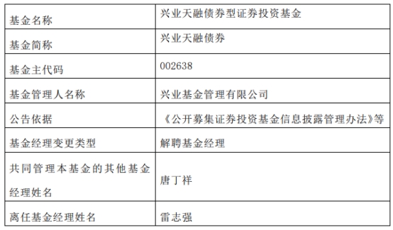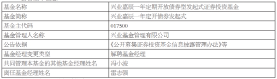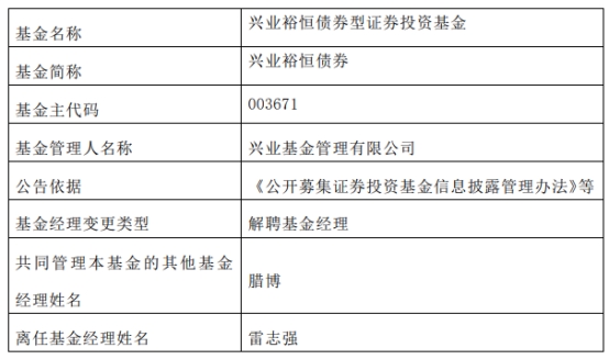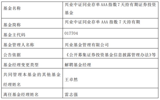 兴业基金雷志强离任7只基金