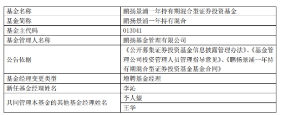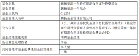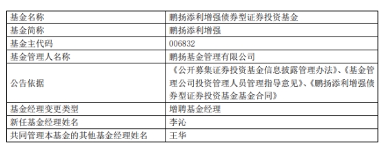 鹏扬基金3只基金增聘基金经理李沁