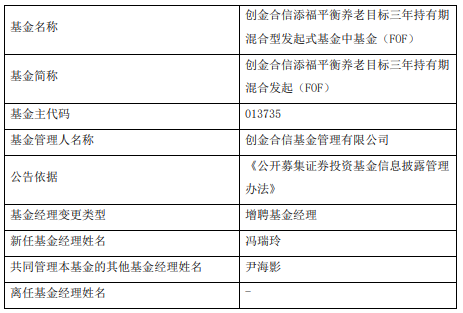 创金合信添福平衡养老目标三年FOF增聘冯瑞玲