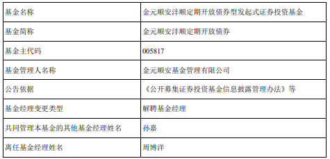 周博洋离任金元顺安沣顺定期开放债券 孙嘉管理