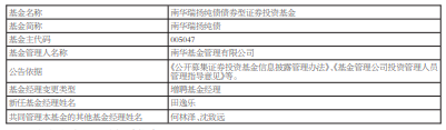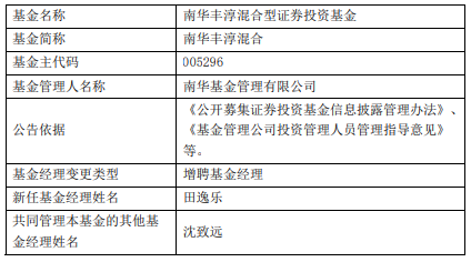 南华丰淳混合南华瑞扬纯债增聘基金经理田逸乐