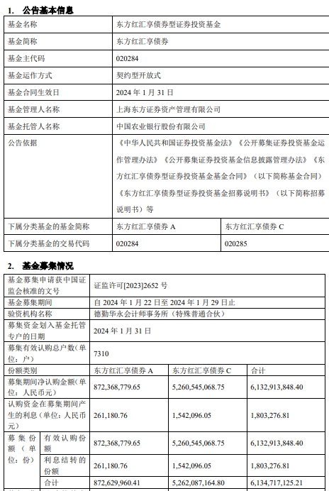 东方红汇享债券成立 基金规模61.33亿元