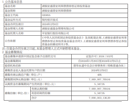 中国经济网北京2月7日讯 今日,浦银安盛基金发布浦银安盛普安利率债债券型证券投资基金合同生效公告。