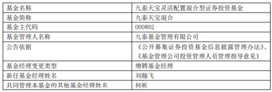九泰天宝灵活配置混合增聘基金经理刘翰飞