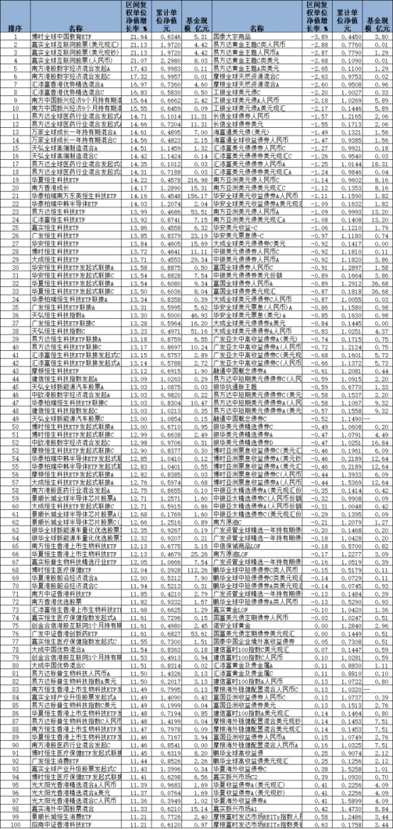 2024年2月份QDII基金涨跌幅前100名