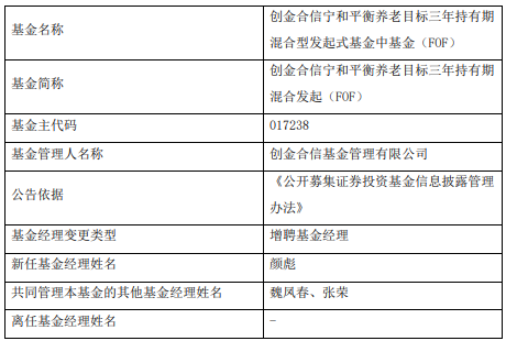 创金合信宁和平衡养老目标三年增聘基金经理颜彪