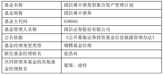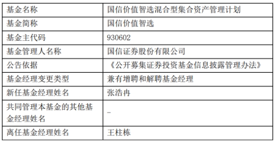 中国经济网北京4月2日讯 今日,国信证券股份有限公司公告称,国信睿丰债券(A类938666;C类970207)、国信价值智选混合(930602)增聘基金经理张浩冉,王柱栋离任国信价值智选混合。