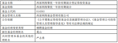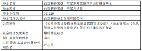 中国经济网北京4月2日讯 今日,西部利得基金管理有限公司公告,西部利得聚盈一年定开债券、西部利得聚优一年持有期混合增聘基金经理葛山。