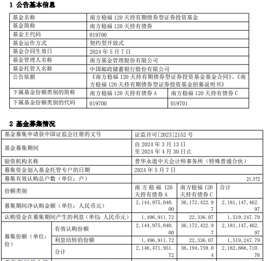 中国经济网北京5月8日讯 今日,南方基金发布南方稳福120天持有期债券型证券投资基金基金合同生效公告。
