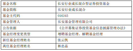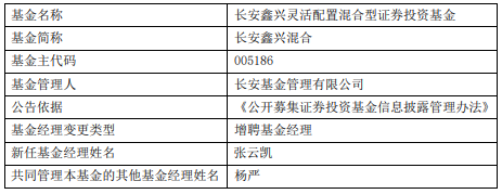 长安行业成长混合长安鑫兴混合增聘基金经理张云凯