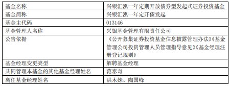 洪木妹与陶国峰离任兴银汇泓一年定开债发起