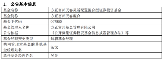 中国经济网北京6月11日讯 今日,方正富邦基金管理有限公司公告称,吴昊因工作需要离任方正富邦天睿混合(A类007850;C类007851)。