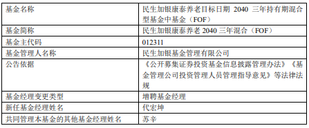 民生加银康泰养老2040三年混合(FOF)增聘代宏坤