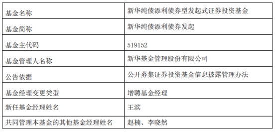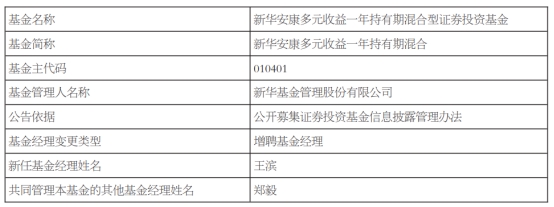 新华基金2只基金增聘基金经理王滨