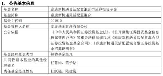 桂跃强与陆建巍离任泰康新机遇灵活配置混合