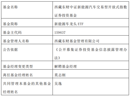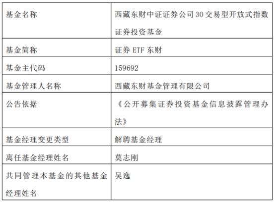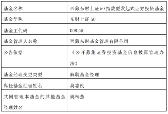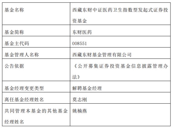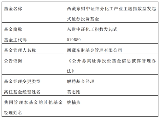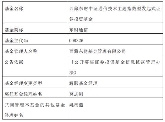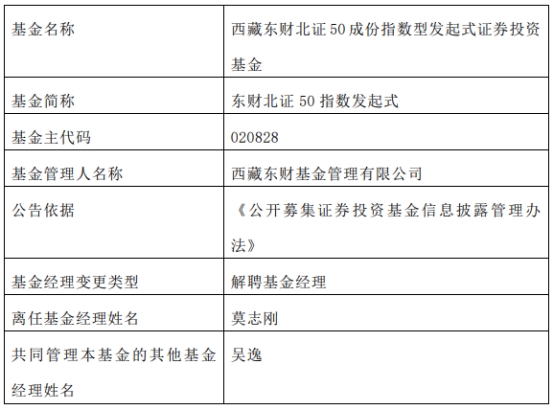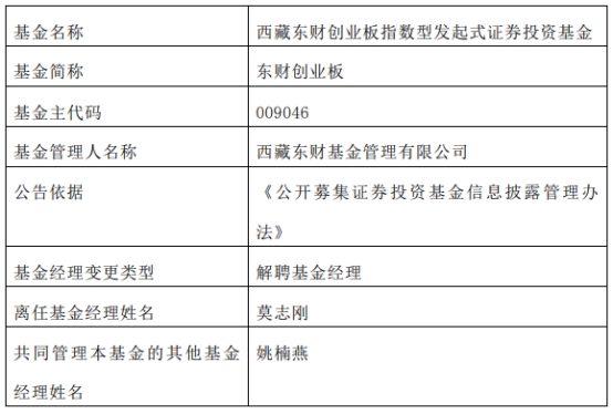 西藏东财基金莫志刚离任10只基金