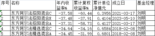 东方阿尔法总经理管理2只基金年内跌幅均超3成