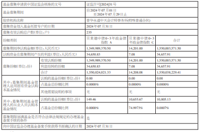 募集期间净认购金额1,550,003,571.50元,认购资金在募集期间产生的利息34,657.91元,募集份额合计1,550,038,229.41份。