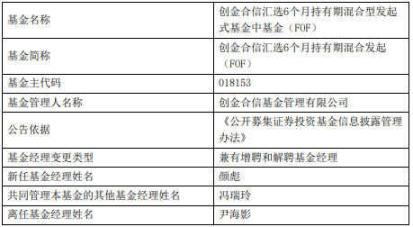 创金合信汇选6个月持有期混合增聘基金经理颜彪