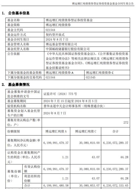 中国经济网北京8月8日讯 今日,博远基金管理有限公司发布博远增汇纯债债券型证券投资基金基金合同生效公告。