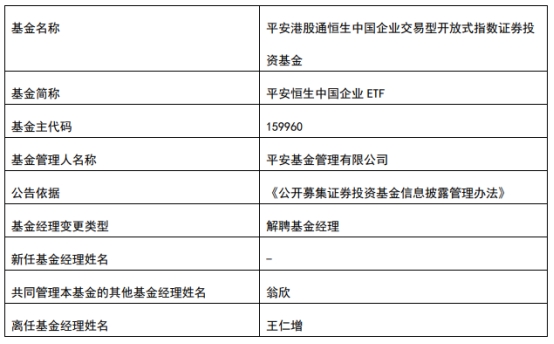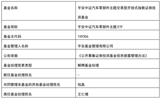 平安基金王仁增离任9只基金