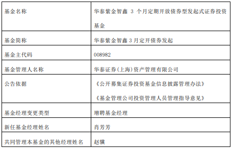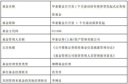 华泰证券资管旗下2债基增聘基金经理肖芳芳