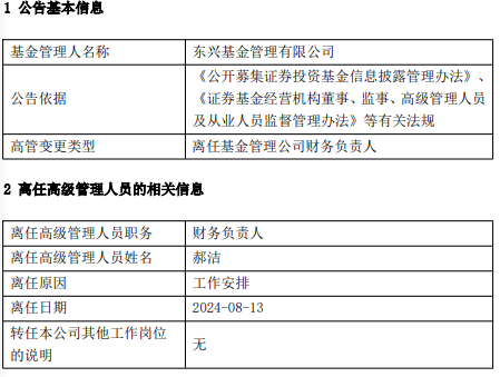 东兴基金财务负责人郝洁离任