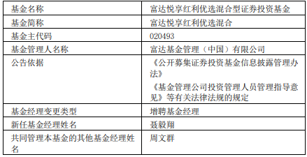富达悦享红利优选混合增聘基金经理聂毅翔