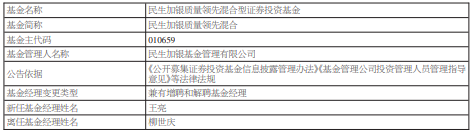 民生加银质量领先混合基金换将 成立3年8个月亏损43%